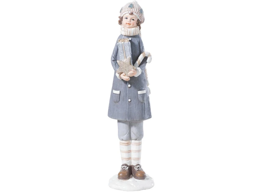 Liebevoll gestaltet und ein idealer Begleiter in der Weihnachtszeit ist die Dekofigur Bub mit Paket. Die Weihnachtsfigur, zart und liebevoll gefertigt, dekoriert Ihren Innenbereich stimmungsvoll und festlich in der Adventzeit.