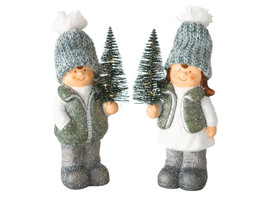 Mit einer Höhe von ca. 23 cm wird diese LED-Dekofigur zum Highlight in der Weihnachtszeit. Die LED-Figur aus Terrakotta in Verbindung mit Polyester ist in den Farben Grün/Grau/Weiß gehalten.