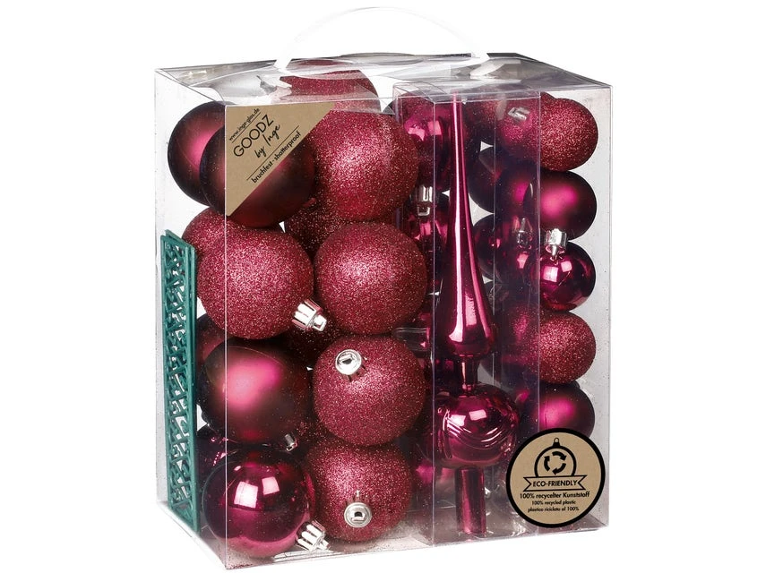 Der Baumschmuck in Berry-Kiss-Mix mit einem Durchmesser von 4 cm und 6 cm ist inkl. schöner Spitze.