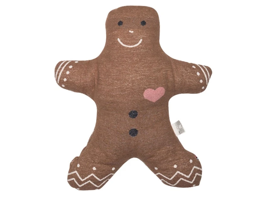 Wahrlich zum Anbeißen ist das witzige Zierkissen in Form eines Lebkuchenmannes. Beonders zur Winterzeit erfreut das Stück seine Beitzer auf Couch und Co und lädt dazu noch zum Kuscheln und Knotzen ein. Gefüllt mit PES-Flocken und waschbar bei 40 Grad.