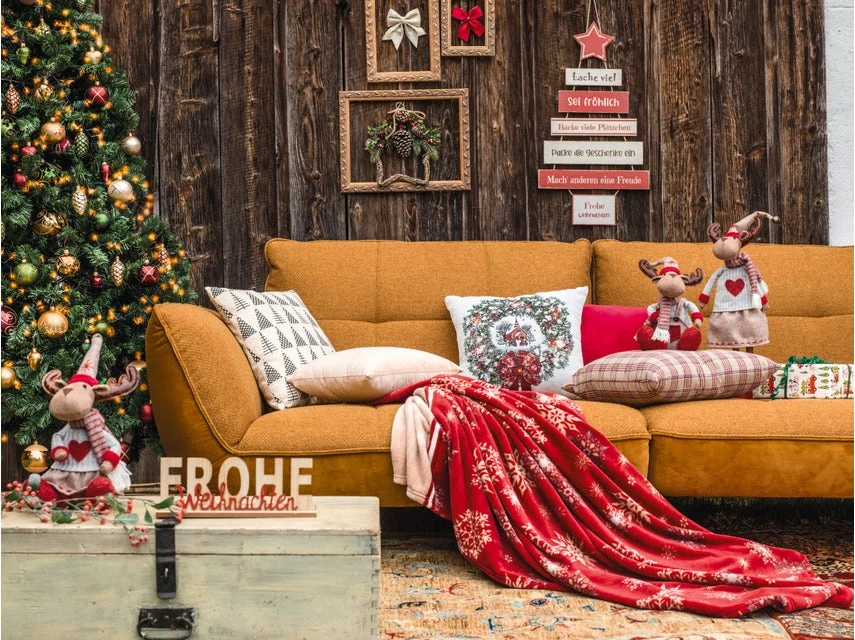Wunderbar weiche Kuscheldecke in winterlichem Dessin. Besonders in der kalten Jahreszeit machen wir es uns gerne auf der Couch gemütlich und genießen die wärmende Wirkung. Aus Polyester hergestellt kann die Wohntextilie bei 30 Grad in der Waschmaschine gewaschen werden.