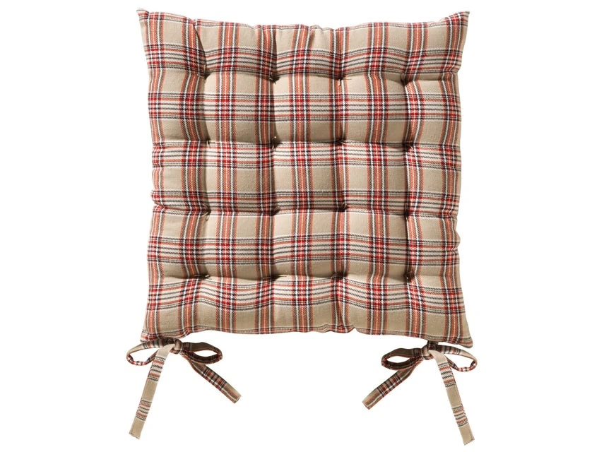 Für gemütliches Ambiente zu Tisch sorgt das Sitzkissen Tradition Karo in Rot und Beige. Mit praktischen Bändern versehen, die dafür sorgen dass das Kissen am Stuhl festgebunden werden kann.