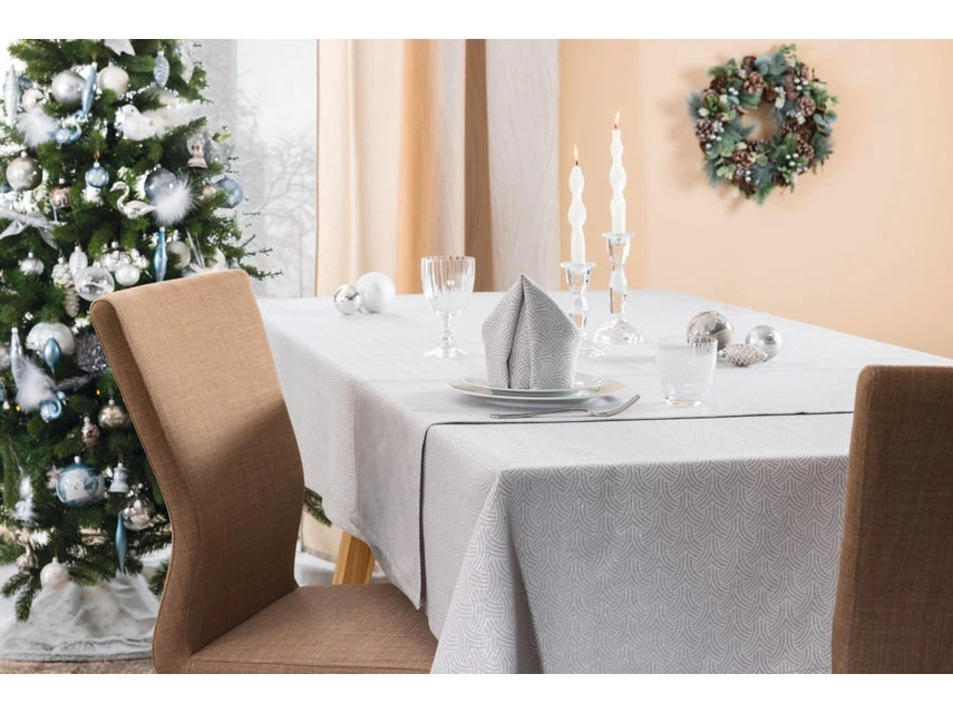 Der silberfarbige Tischläufer Shine bringt neues Flair auf Ihren Esstisch. Elegant und stilvoll sorgt er für bezaubernde Momente und schützt auch Ihren Tisch vor Flecken und Kratzern.