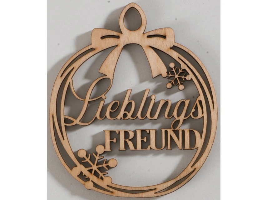 Aus Holz ist dieser weihnachtliche Dekohänger mit Schrift ein dekoratives Element in der Weihnachtszeit.
