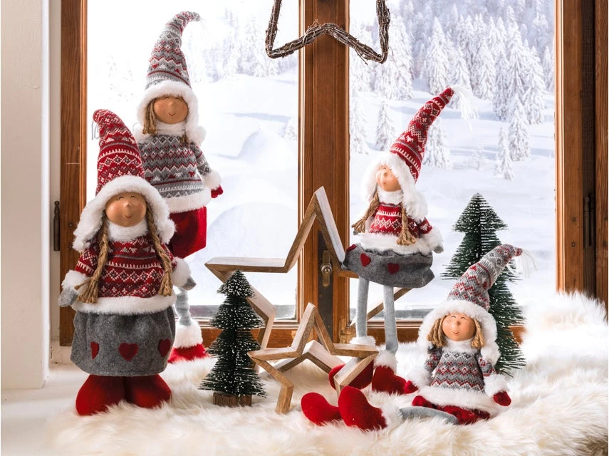 Die weihnachtlich gekleidete Dekopuppe im Norwegermuster ist ein Hingucker in der Weihnachtszeit.
