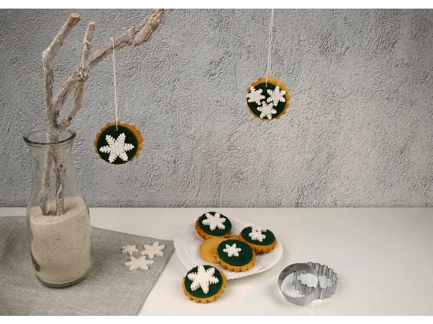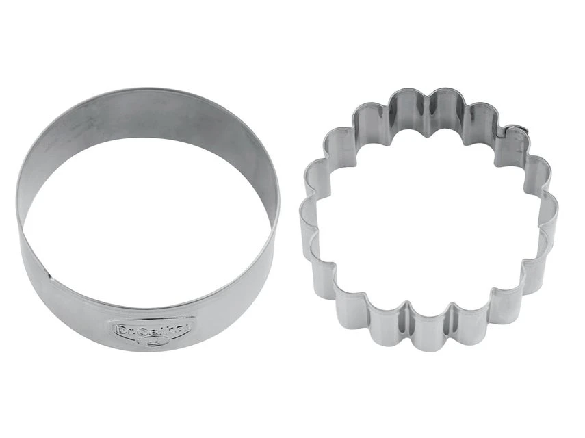 Mit diesem Set können Sie das immer und immer wieder machen. Ein runder Ausstecher und einer mit vielen kleinen Bögen am Rand ergeben den perfekten Doppledecke für die leckersten Füllungen. Natürlich können Sie auch einzelne Kekse damit backen und verzieren.