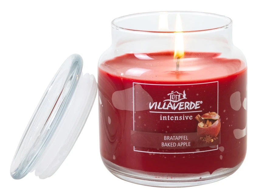 Die Duftkerze im Glas mit Duftrichtung Bratapfel zaubert weihnachtliche Gerüche in die Wohnräume.