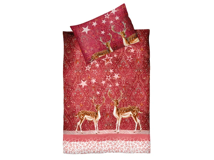 Herrlich weich und anschmiegsam ist die kuschelige Bettwäsche in Köperflanell. Das zauberhafte Muster kombiniert mit den Rehen bringt Abwechslung und winterliche Stimmung ins Schlafzimmer. Die Bettwäsche besteht aus Polsterbezug (70×90 cm) und Tuchentbezug (140×200 cm). Ausgestattet mit einem praktischen Reißverschluss lässt sich die Bettwäsche aus reiner Baumwolle bei 60 Grad in der Waschmaschine waschen.