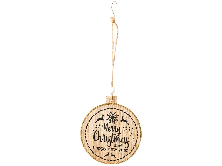 Stimmungs- und liebevoll gestaltet für jeden Wohnraum präsentiert sich der runde Hänger aus Holz als Deko-Accessoire zur Weihnachtszeit.