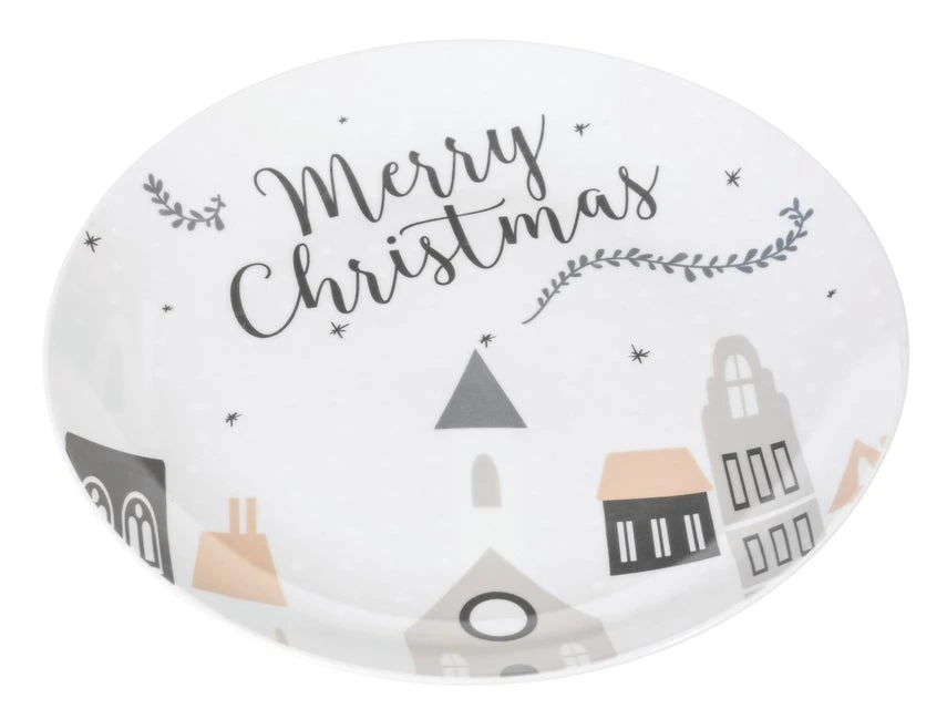 Servieren Sie Ihre Kekse auf dem hübschen Keksteller aus Porzellan mit dem englischen Weihnachtsgruß und der Abbildung eines weihnachtlichen Dorfes. Mit einem Durchmesser von 30 cm haben eine Menge Kekse darauf Platz, welche mit Sicherheit im Nu vernascht sind. Der Teller ist mikrowellengeeignet und kann bedenkenlos in der Spülmaschine gereinigt werden.