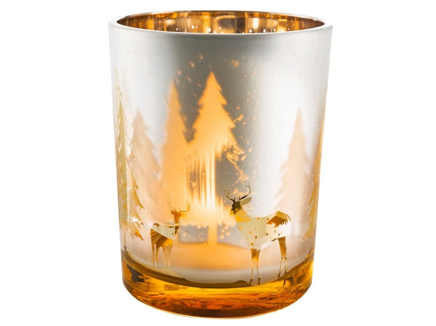 Großhandel ⭐ Kerzenglas mit Rentiere/Häuser “Black&White” – 7/8 cm in weiß 🧨