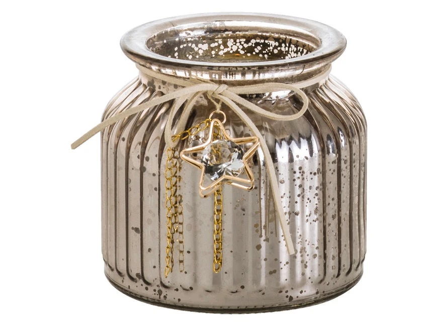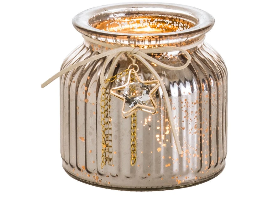 Zu einem weihnachtlichen Hingucker wird dieses Kerzenglas mit goldenem Sternanhänger.