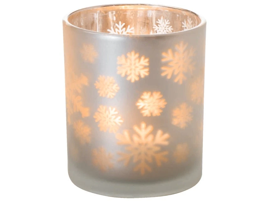 Das Kerzenglas präsentiert sich als Deko-Accessoire zur Weihnachtszeit.