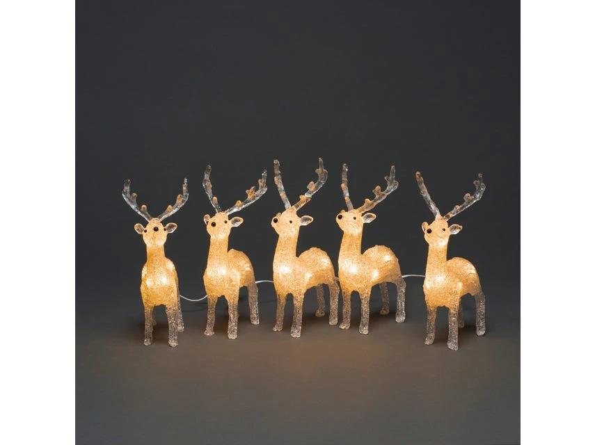 Coupon 😉 KONSTSMIDE LED-Acryl-Rentier 5er-Set – 13/19/7 cm in weiß 🎁