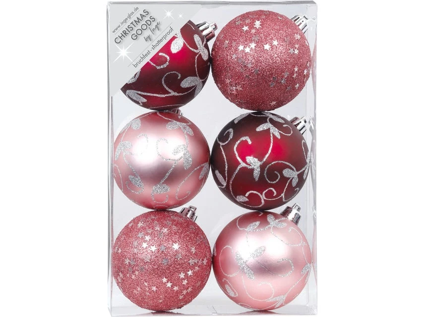 Der Baumschmuck in Berry-Mix mit einem Durchmesser von 8 cm ist dekoriert im 6er-Set.