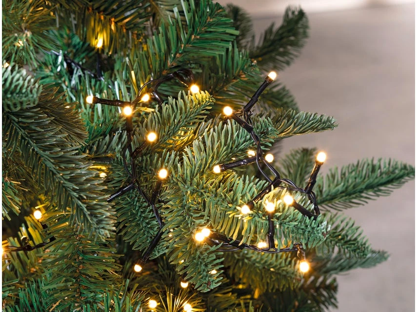 Mit warmweißen Lichtern sorgt diese LED-Clusterkette für eine besonders festliche Beleuchtung in der Weihnachtszeit.