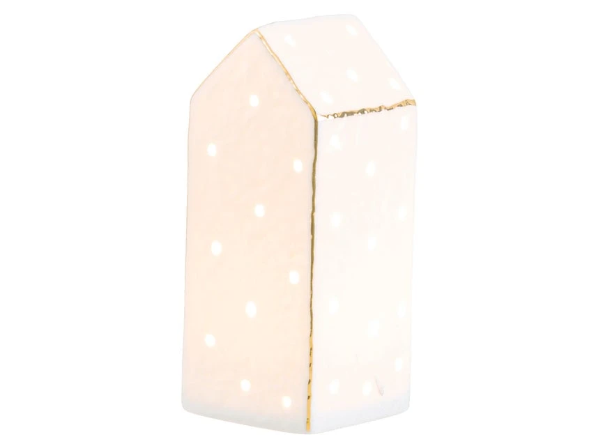 Lassen Sie Ihre Wohnräume mit diesem Dekohaus in Weiß/Gold wahrlich erstrahlen. Das Dekoelement wird Sie durch die Weihnachtszeit begleiten und für einen strahlenden Blickfang sorgen.