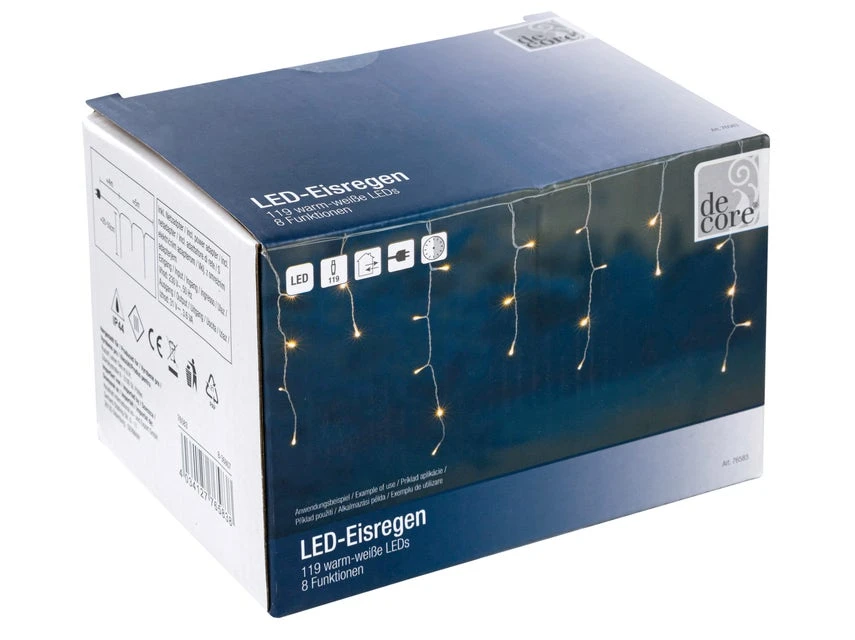 Mit warmweißen Lichtern erhellt diese Lichterkette LED-Eisregen jedes Fenster und verbreitet eine warme Atmosphäre in der Weihnachtszeit.