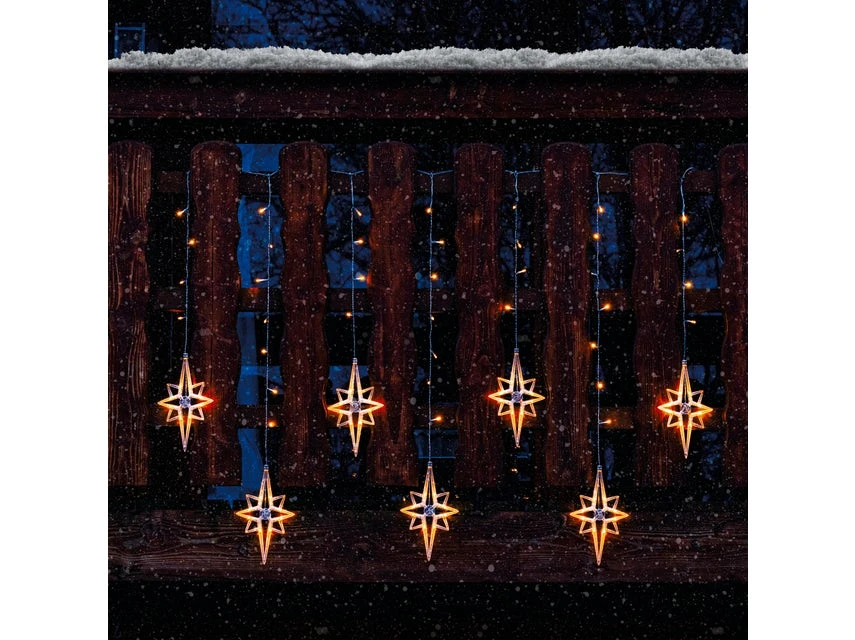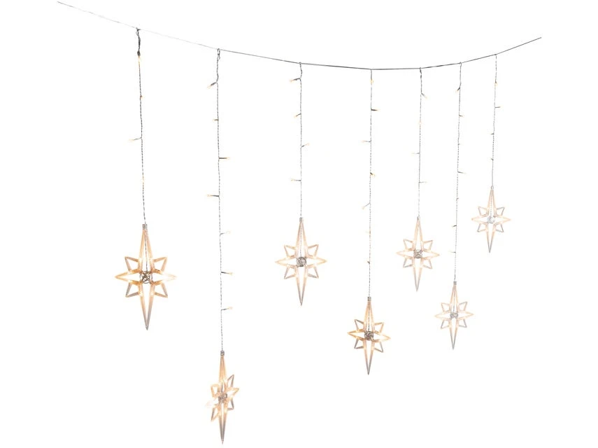 Mit warmweißen Lichtern erhellt dieser LED-Lichtervorhang jedes Fenster und verbreitet eine warme Atmosphäre in der Weihnachtszeit.