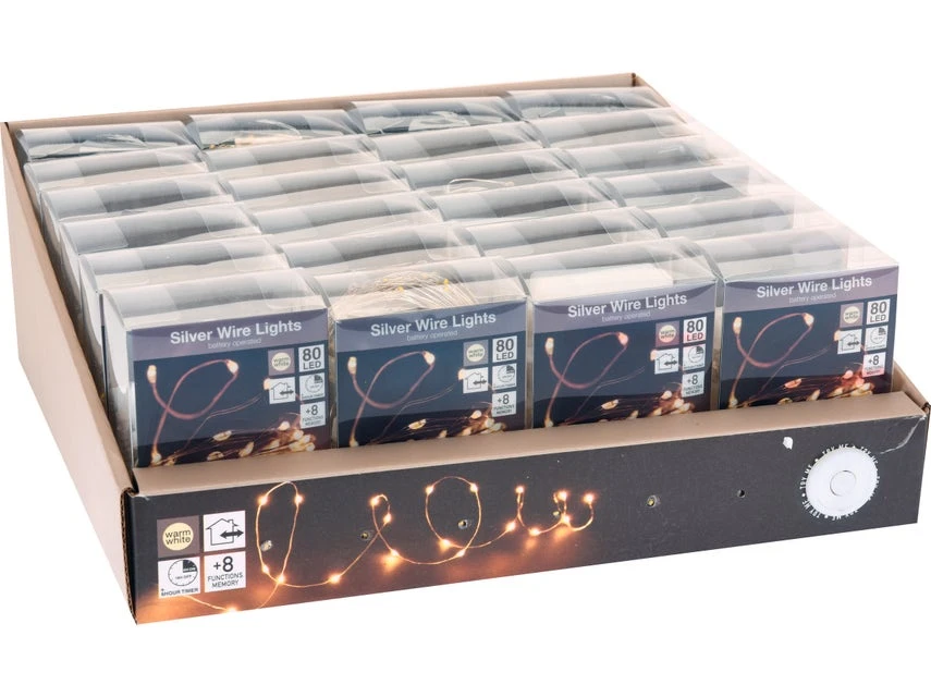 80 warmweiße LED-Lichter sorgen für eine optimale Beleuchtung. Diese weihnachtliche Lichterkette ist auch für den Außenbereich verwendbar.