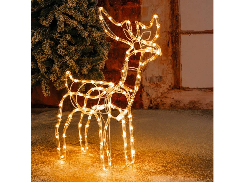 Mit warmweißen LED-Lichtern sorgt dieses stehende Rentier für eine festliche und stimmige Weihnachtsbeleuchtung in Ihrem Garten, im Außenbereich, in der Weihnachtszeit.
