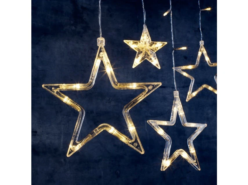 Mit warmweißen Lichtern erhellt dieser LED-Sternenvorhang jedes Fenster und verbreitet eine warme Atmosphäre in der Weihnachtszeit.