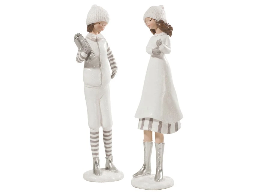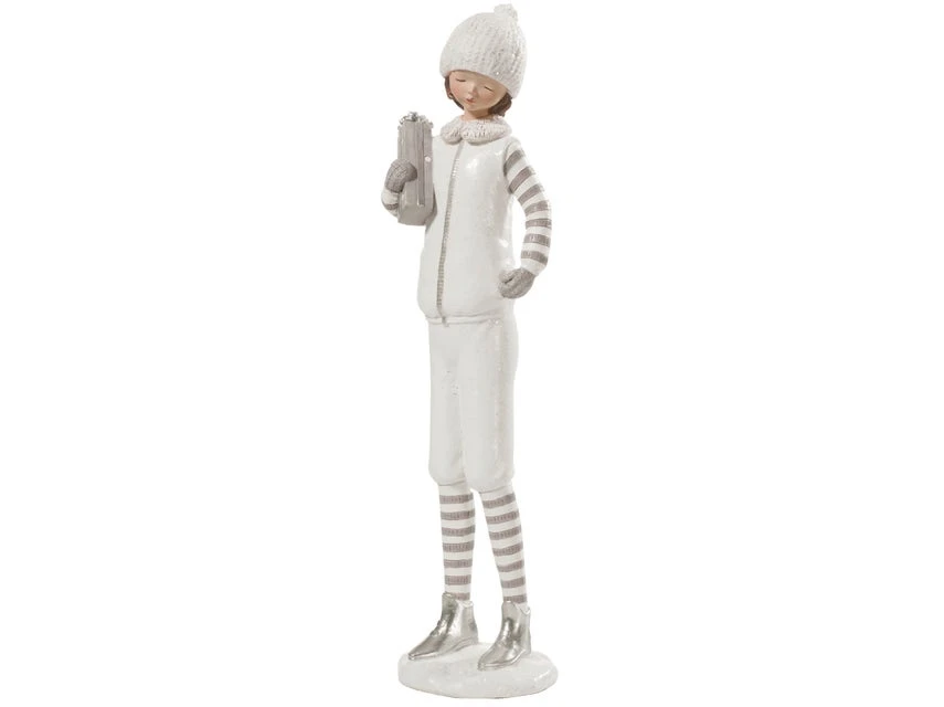 Die Dekofigur Mädchen mit Geschenk präsentiert sich als Deko-Accessoire zur Weihnachtszeit.