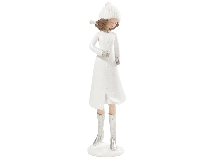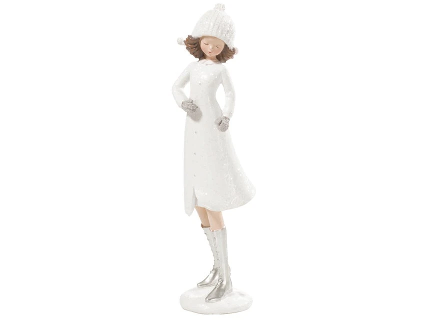 Die Dekofigur Mädchen mit Kleid präsentiert sich als Deko-Accessoire zur Weihnachtszeit.