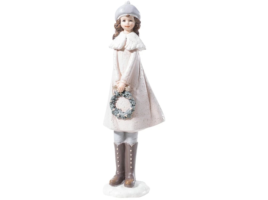 Liebevoll gestaltet und ein idealer Begleiter in der Weihnachtszeit ist die Dekofigur Mädchen mit Kranz. Die Weihnachtsfigur, zart und liebevoll gefertigt, dekoriert Ihren Innenbereich stimmungsvoll und festlich in der Adventzeit.