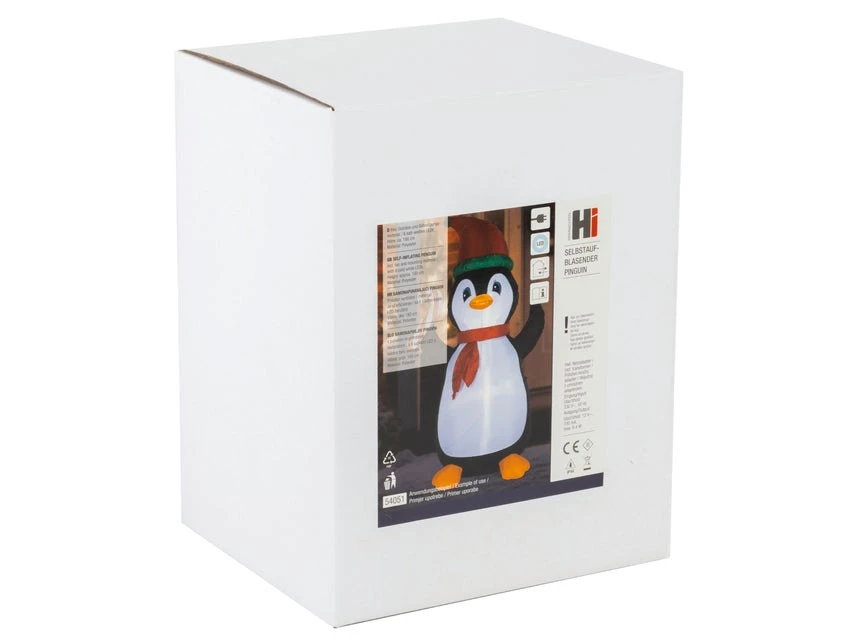 Mit 2x 3-farbigen LED-Lichtern sorgt dieser aufblasbare Pinguin für eine besonders stimmige Beleuchtung in der Weihnachtszeit.