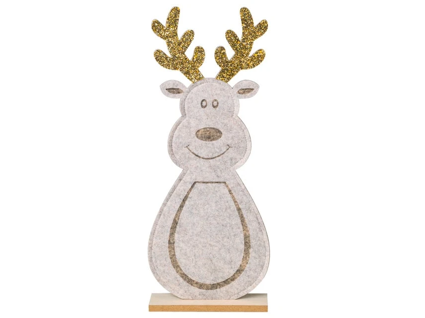 Lassen Sie Ihre Wohnräume mit diesem niedlichen Rentier aus Filz wahrlich erstrahlen. Das Dekoelement wird Sie durch die Weihnachtszeit begleiten und für einen strahlenden Blickfang sorgen.
