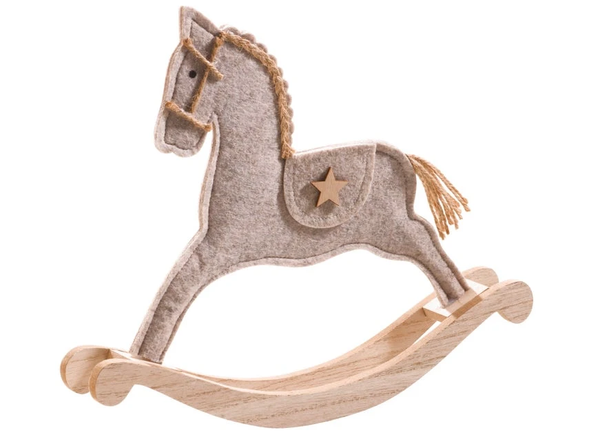 Aus Filz ist dieses weihnachtliche Schaukelpferd ein dekoratives Element in der Weihnachtszeit.