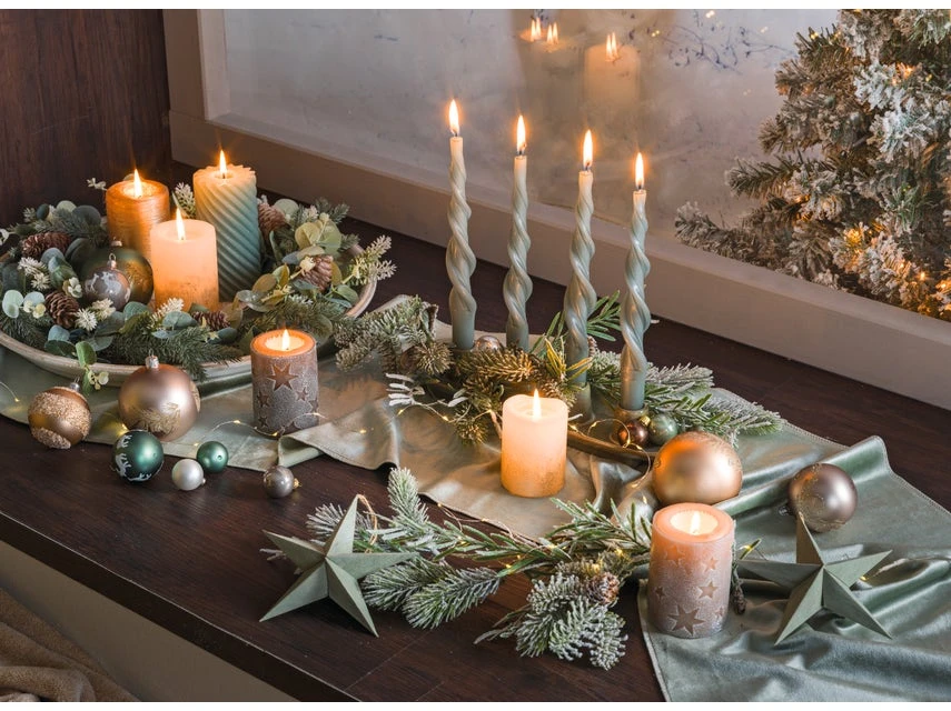 Diese weihnachtliche Spitzkerze “Natur” passt perfekt zu jeder Weihnachtslaterne und auf einen schön gestalteten Adventteller oder Adventplatte.