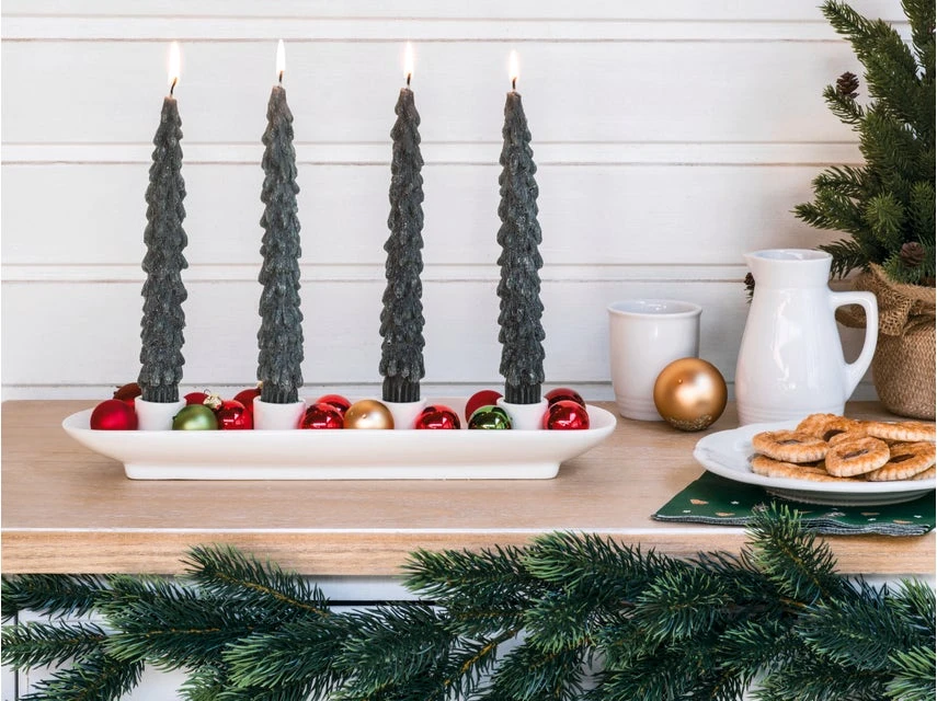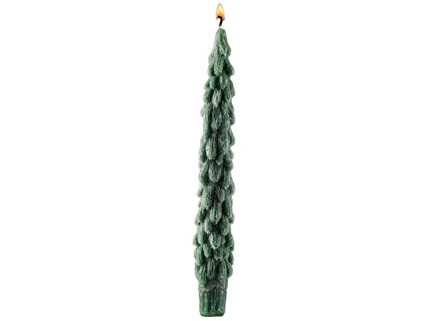 Diese grünfarbene Stabkerze Tannenbaum passt zu jeder Weihnachtslaterne und auf einen schön gestalteten Adventteller.