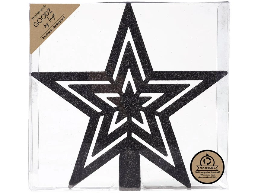 Die Christbaumspitze darf oben auf der Spitze des Weihnachtsbaumes auf keinen Fall fehlen. Die Christbaumspitze aus Kunststoff aus einem Schwarz-Mix hat einen Durchmesser von 21 cm. Die Baumspitze lässt sich wunderbar mit Christbaumkugeln kombinieren.