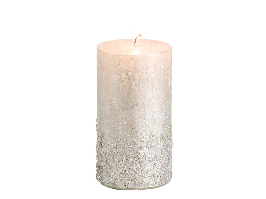 Diese silberfarbene Stumpenkerze “Silber” passt zu jeder Weihnachtslaterne und auf einen schön gestalteten Adventteller.