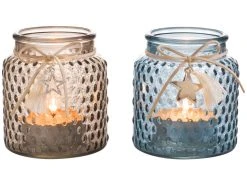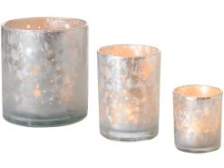 Auslauf 🧨 Kerzenglas Schneeflocken “Silber” – 9/10 cm in grau 🥰
