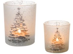 Blitzangebot 👍 Kerzenglas mit Bäumen “Silber” – 7/8 cm in silberfarben 🎉