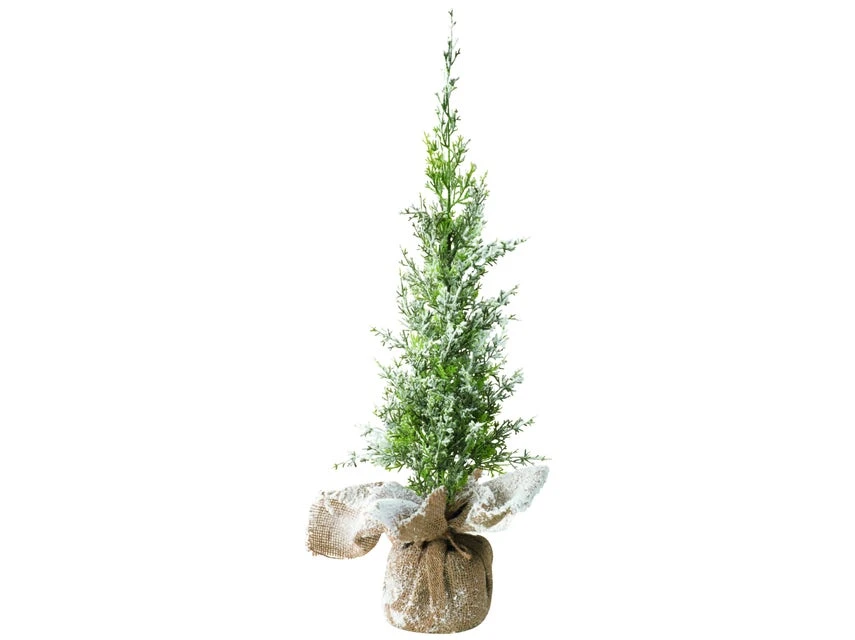 Aktion 👏 Zedernbaum mit Schnee im Jutesack – 60 cm in grün 😉